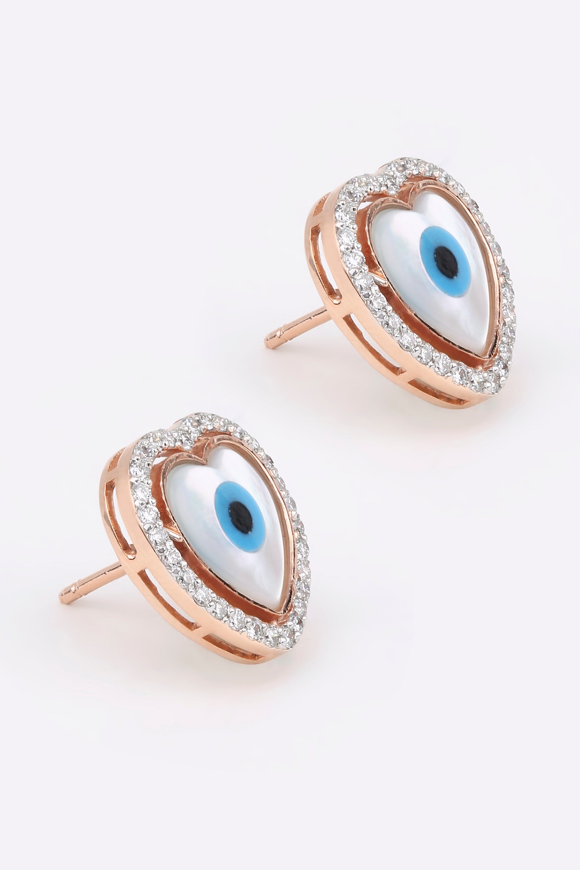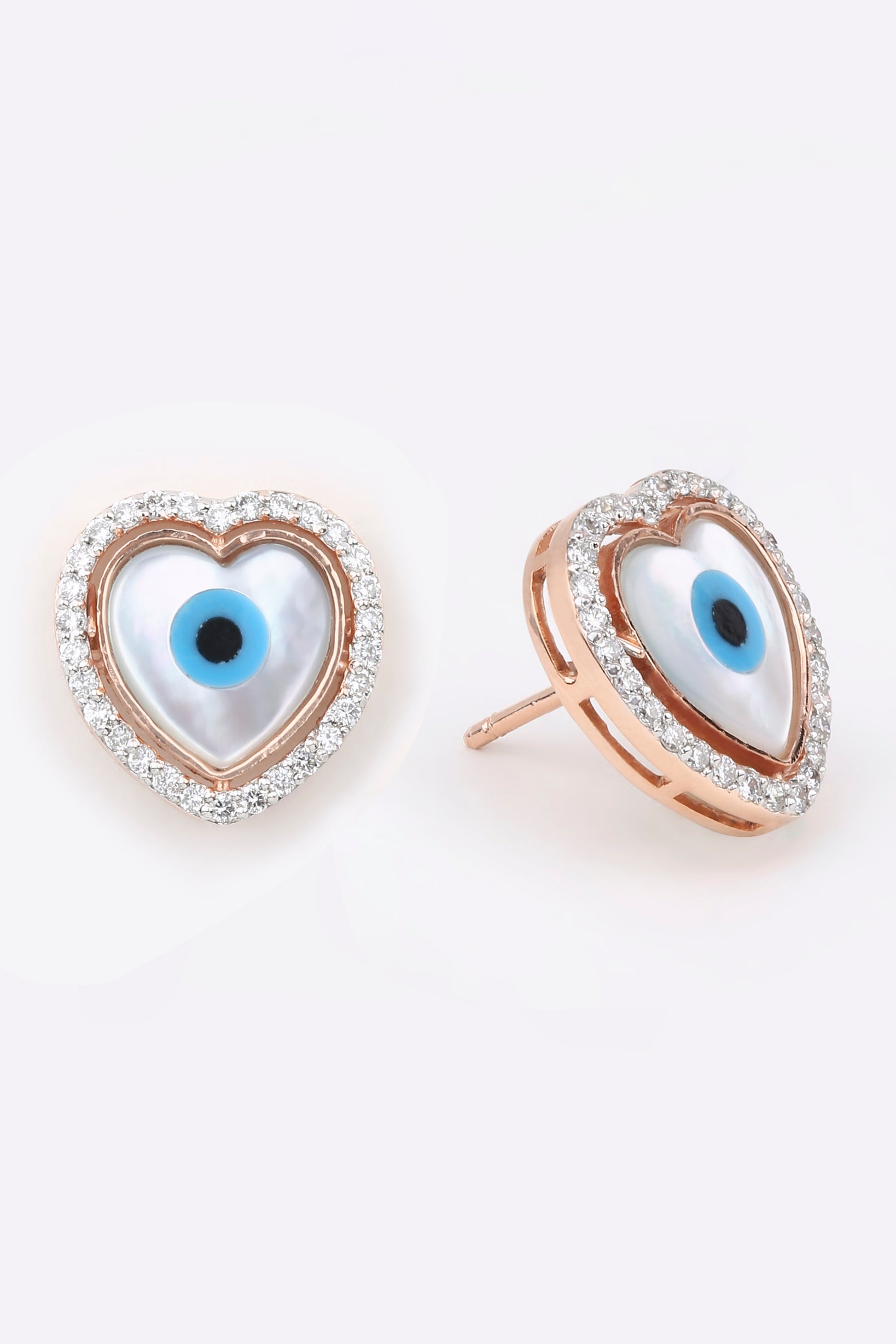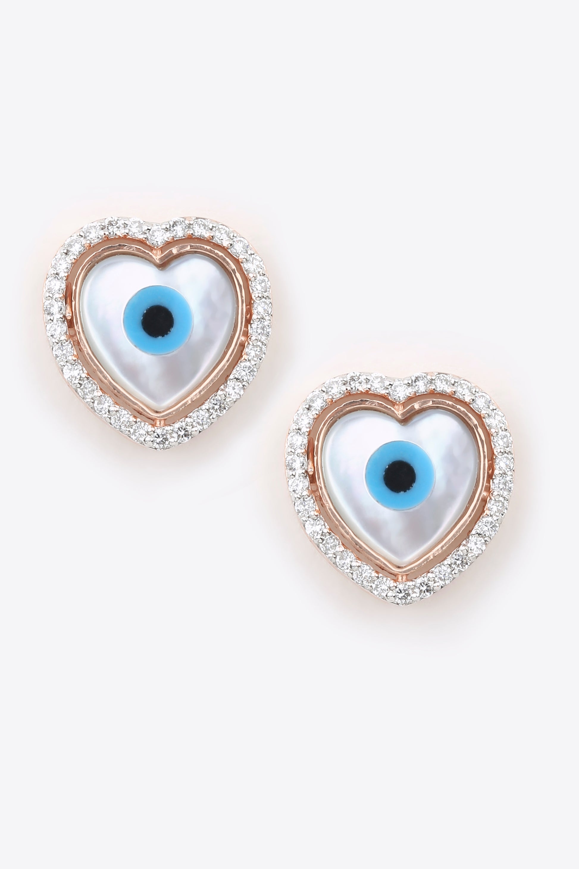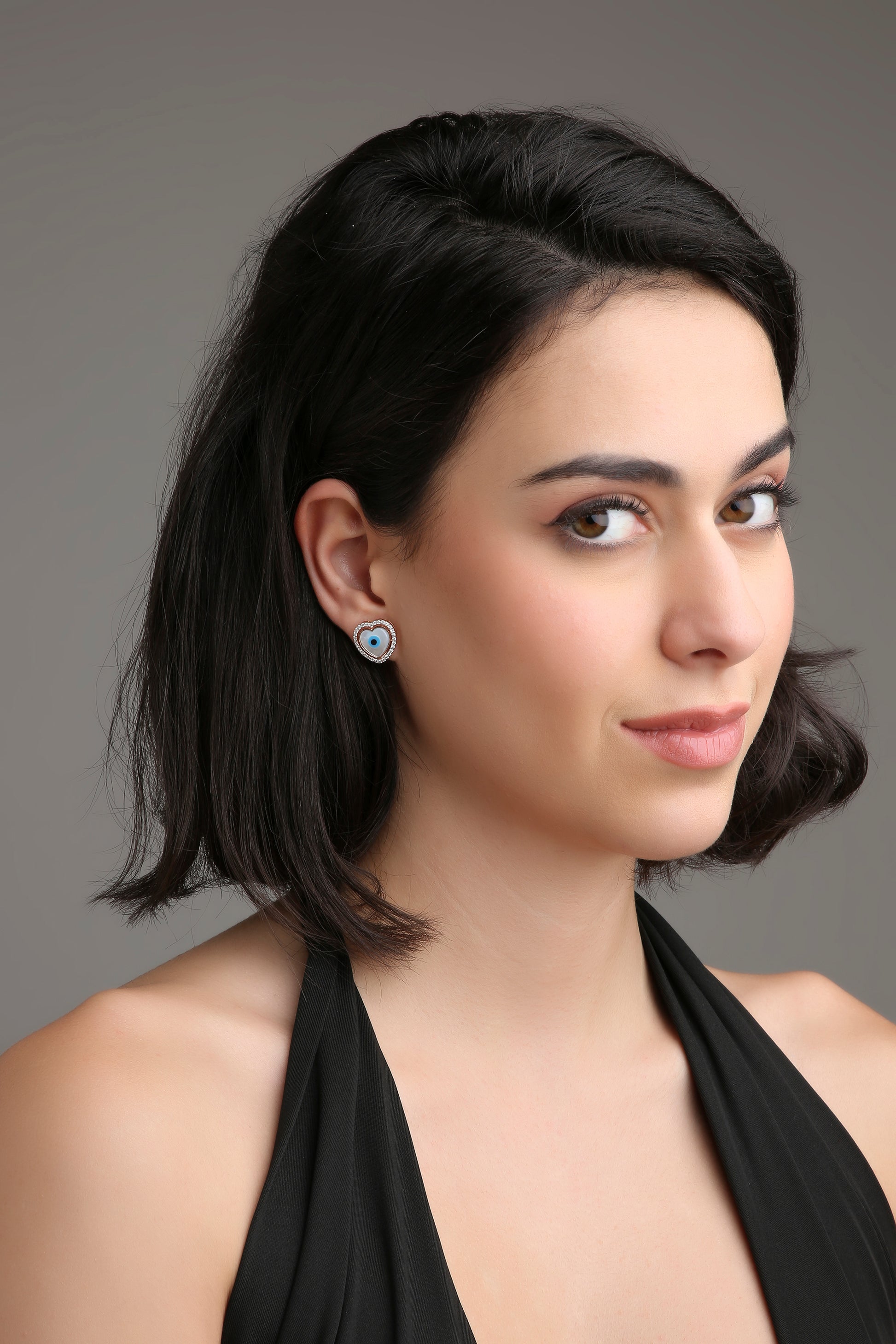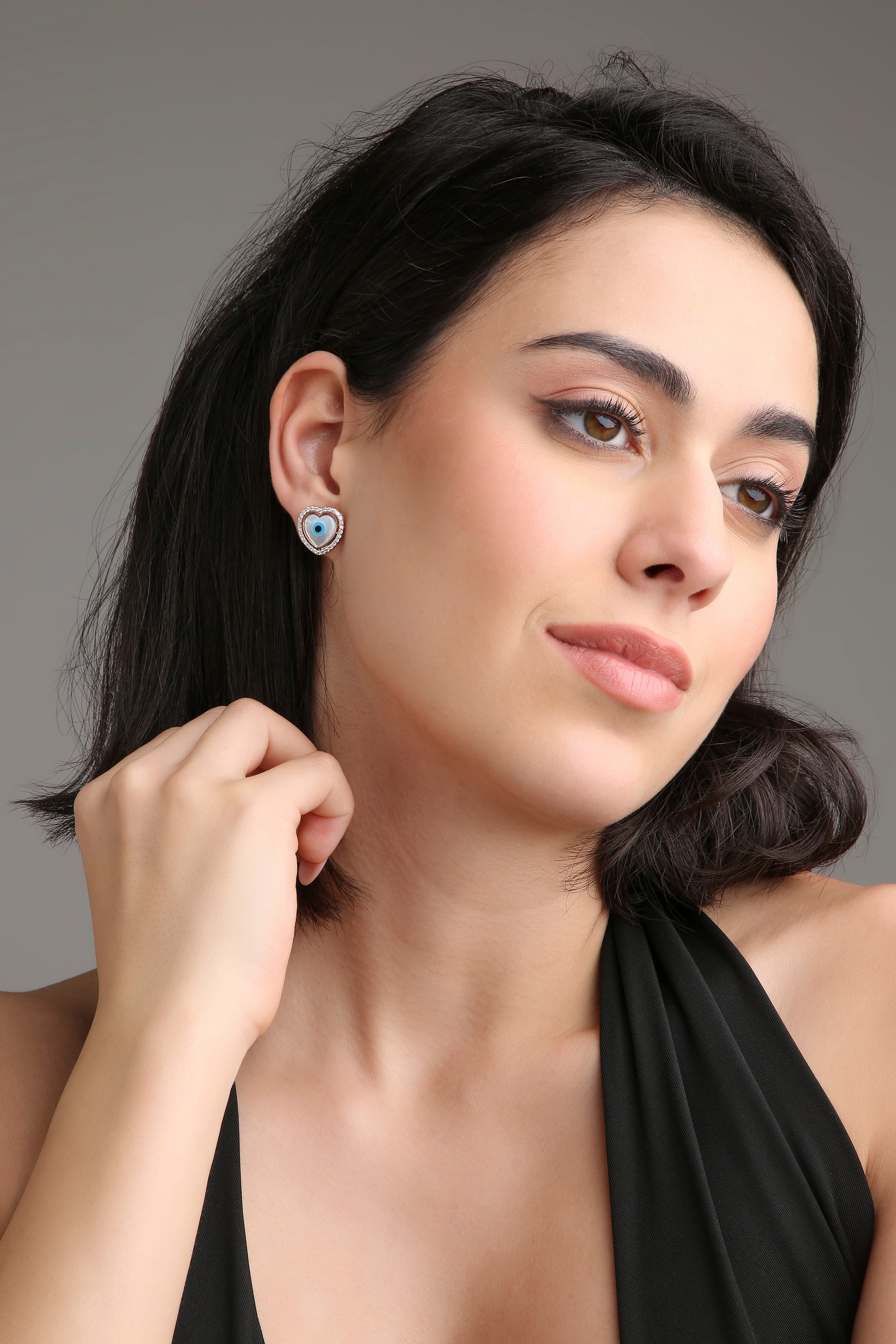The Evora Aveline earrings are a symbol of love, luck, and luminous beauty. Designed in a heart silhouette, they feature a radiant mother-of-pearl base accented by a striking blue eye at the center — framed with shimmering stones that add a touch of brilliance. Elegant yet powerful, these earrings bring together protection and passion in one timeless design.