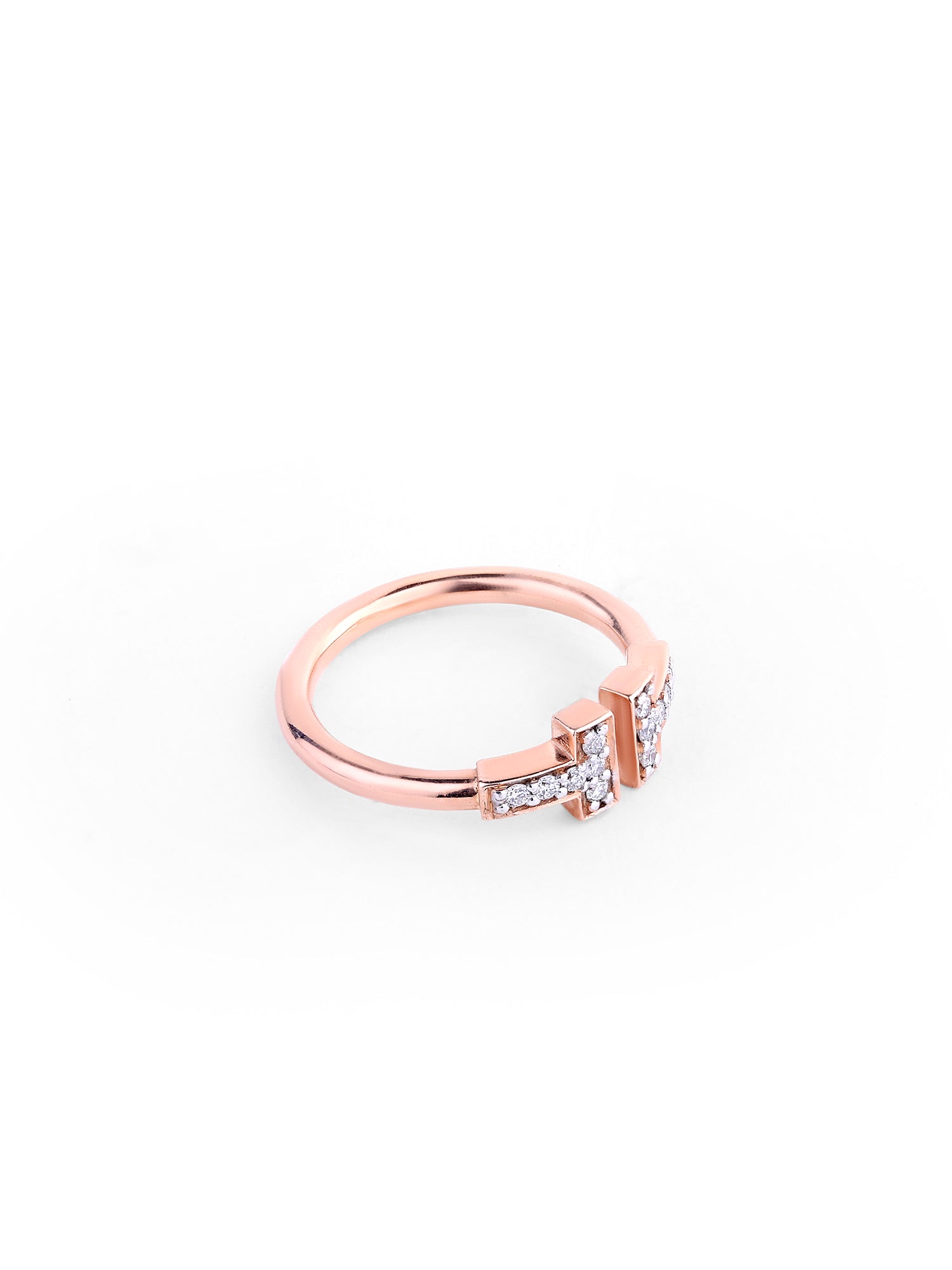 Bold yet refined, the Radiant Edge ring redefines modern elegance. Its sleek rose gold band meets two diamond-studded bars, symbolizing strength and connection. Designed for those who embrace both power and poise, it’s a radiant reminder that true brilliance lies in the details.