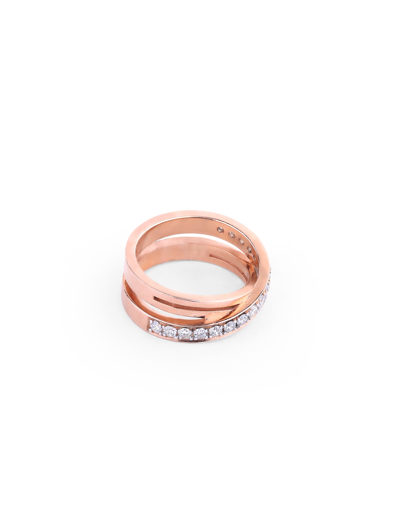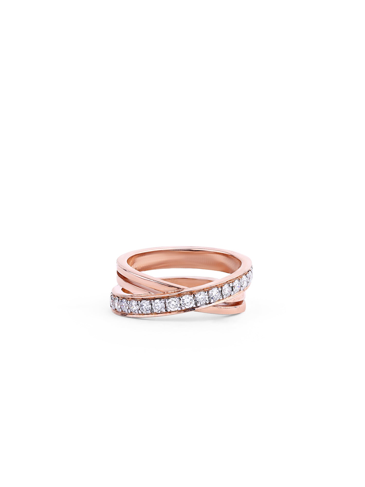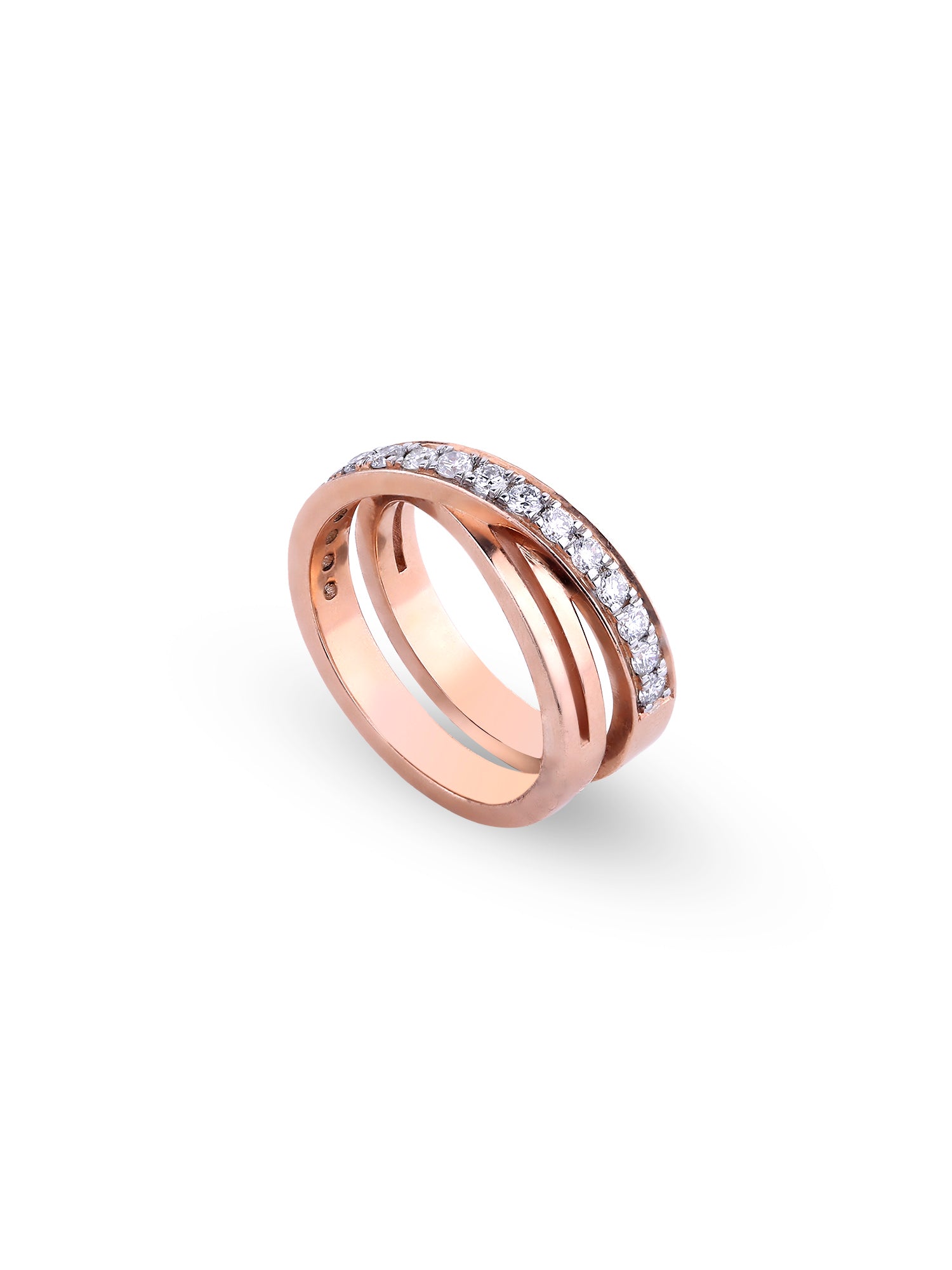 The Radiant Orbit ring captures motion and elegance in perfect harmony. With intertwining rose gold bands circling a row of dazzling diamonds, it reflects the beauty of endless connection and luminous grace. A statement of sophistication for those who shine effortlessly in every sphere.