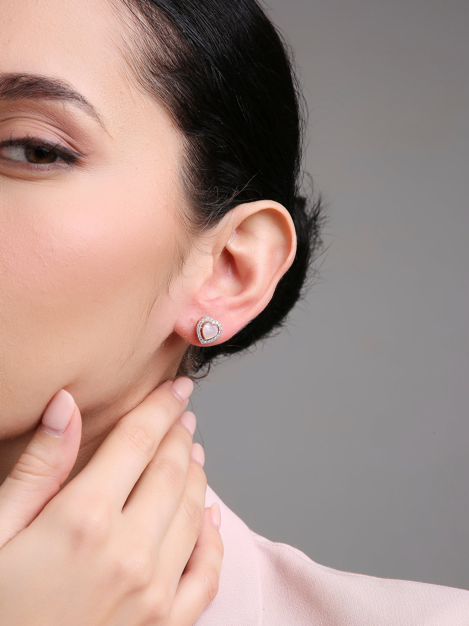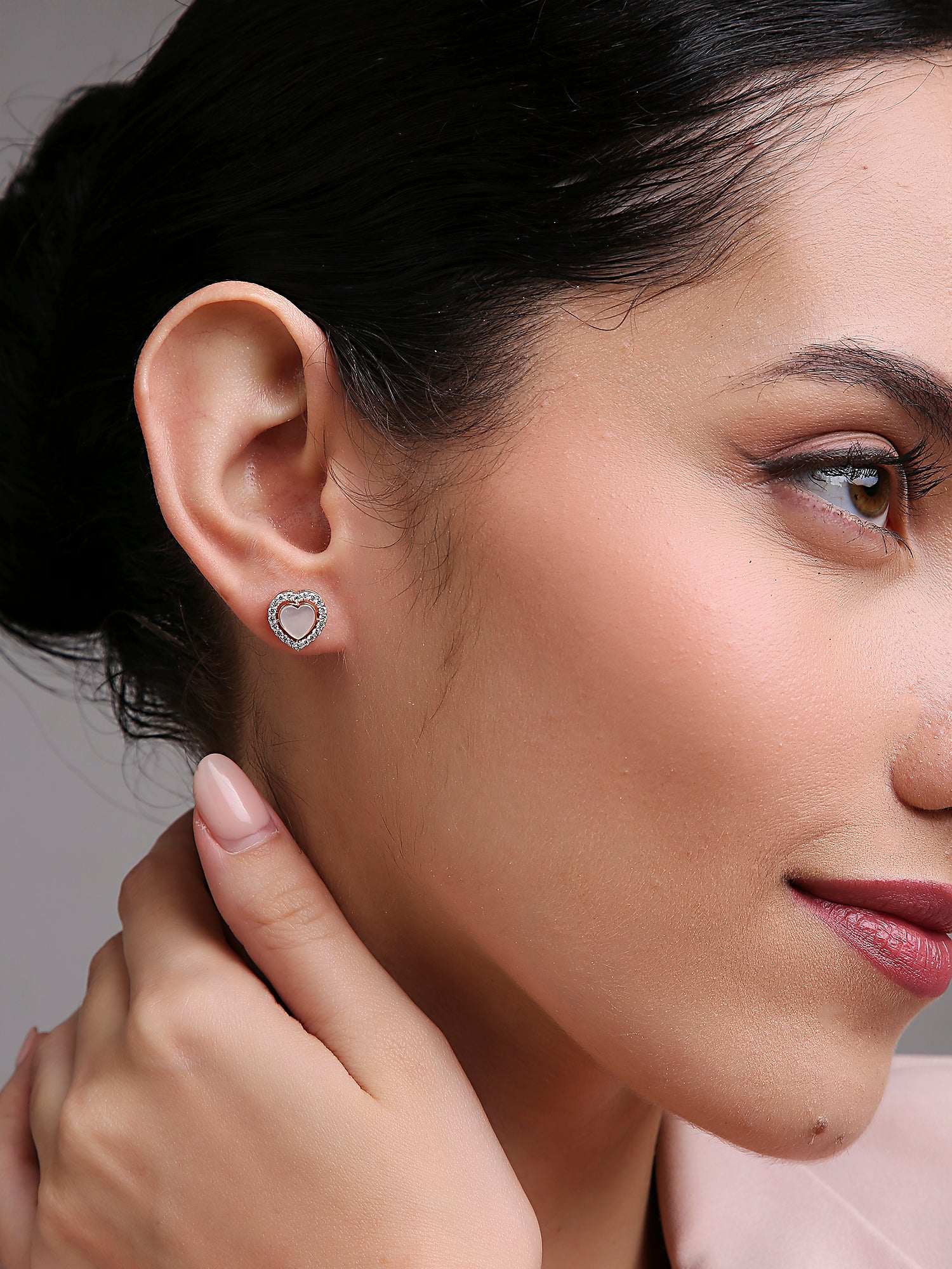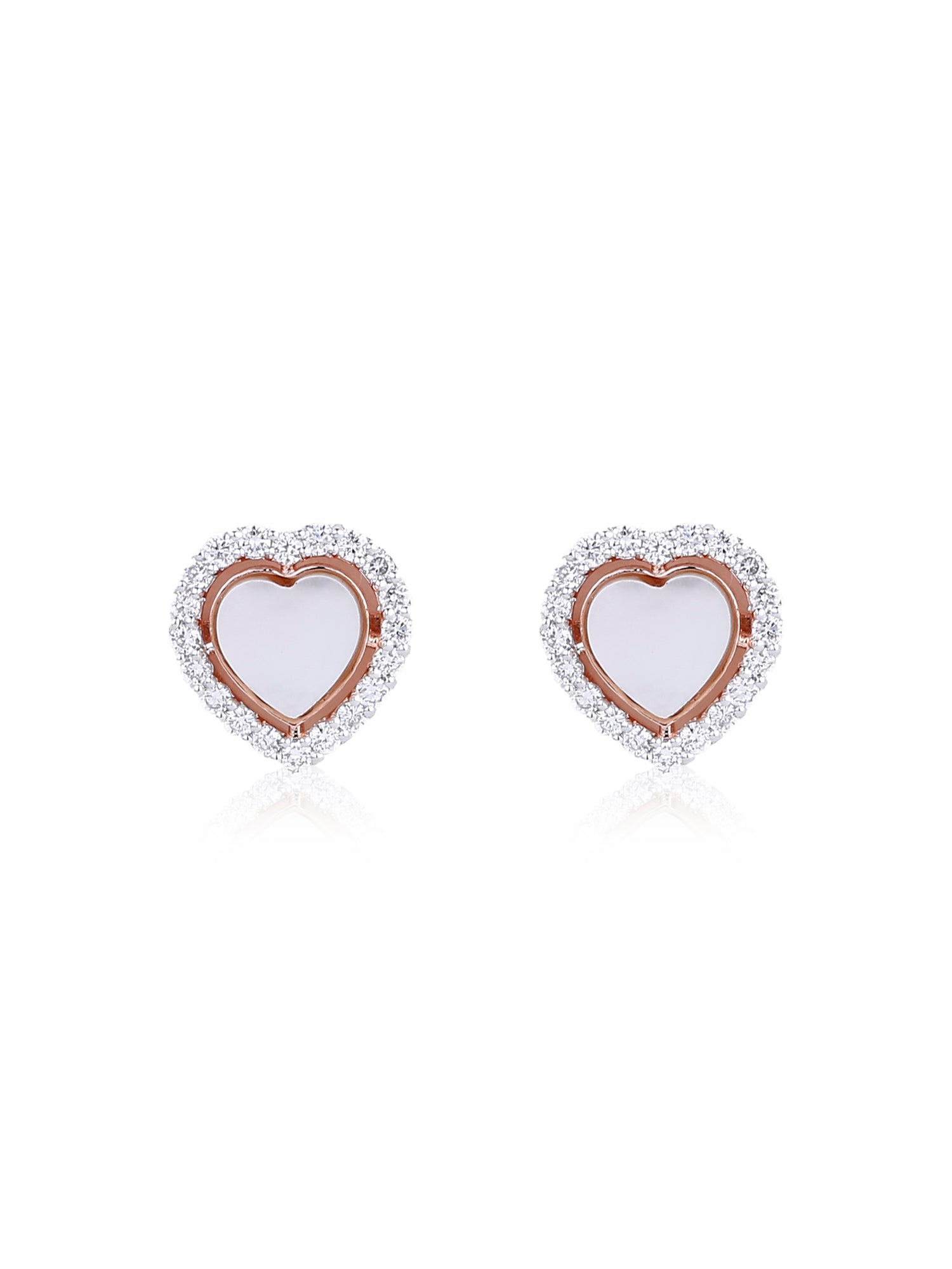 The Evora Amour earrings embody the essence of timeless romance with their soft heart-shaped silhouette framed in a halo of dazzling diamonds. Crafted in warm rose gold and luminous white enamel, they radiate elegance and love — a delicate expression of affection, perfect for every occasion.