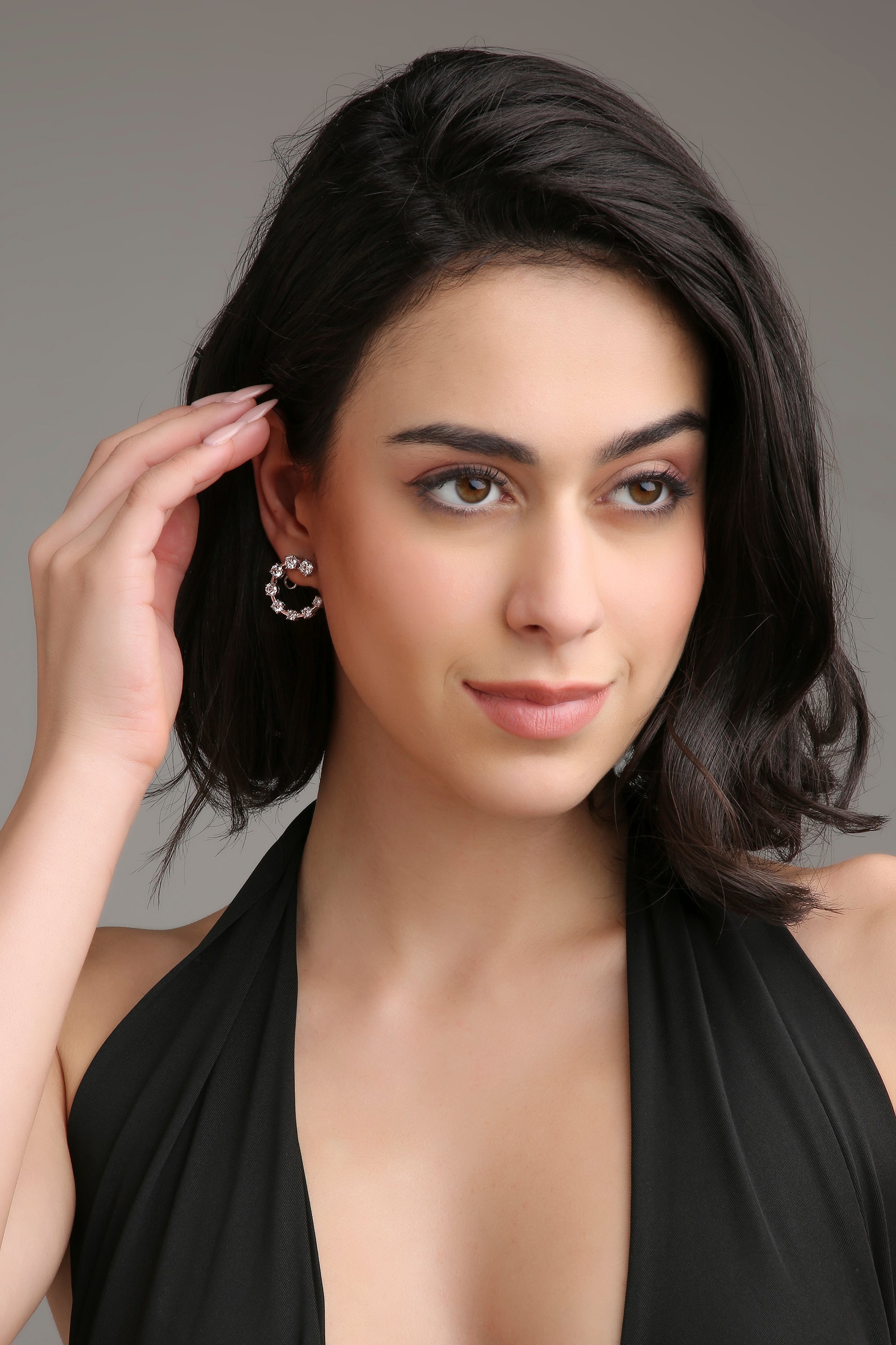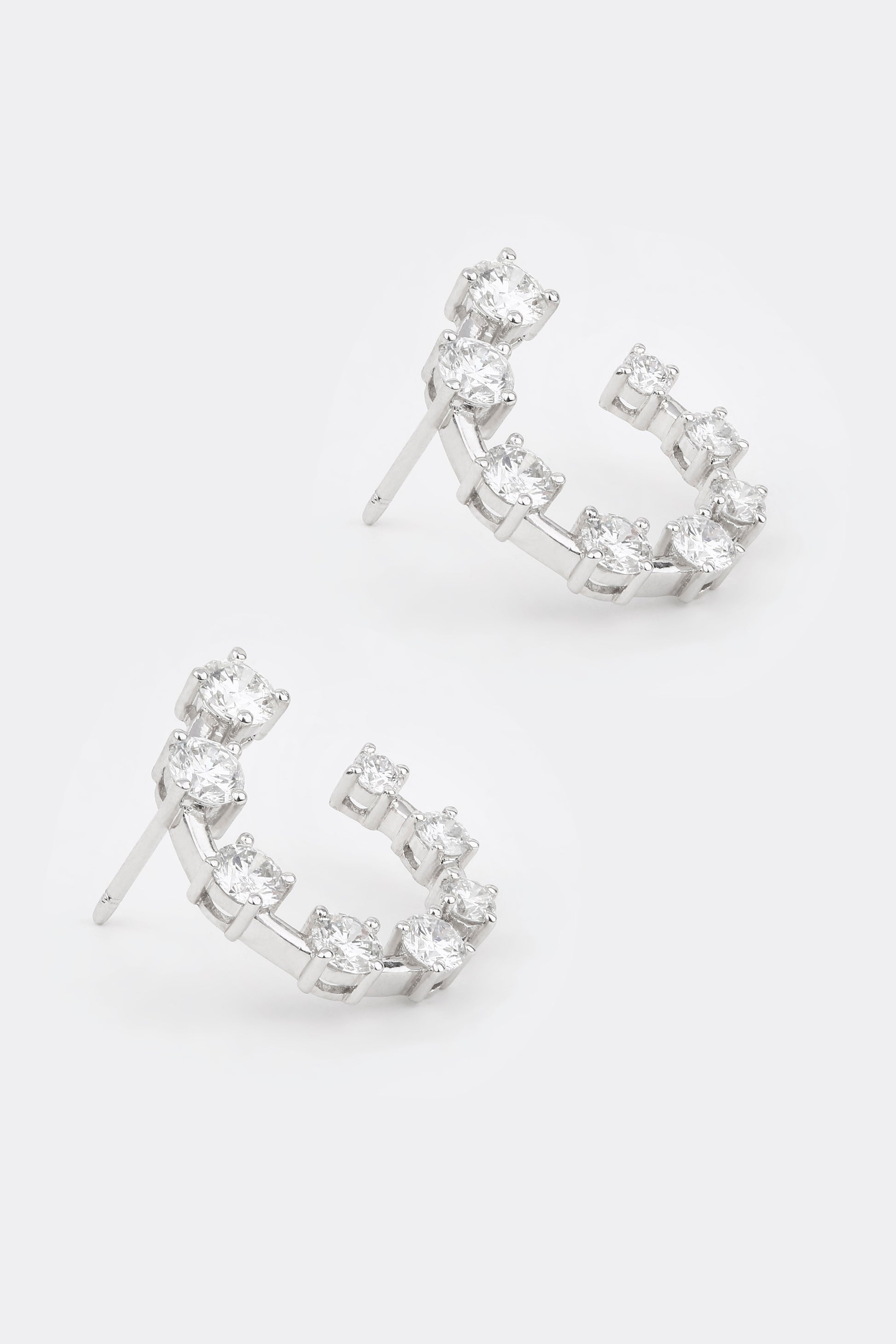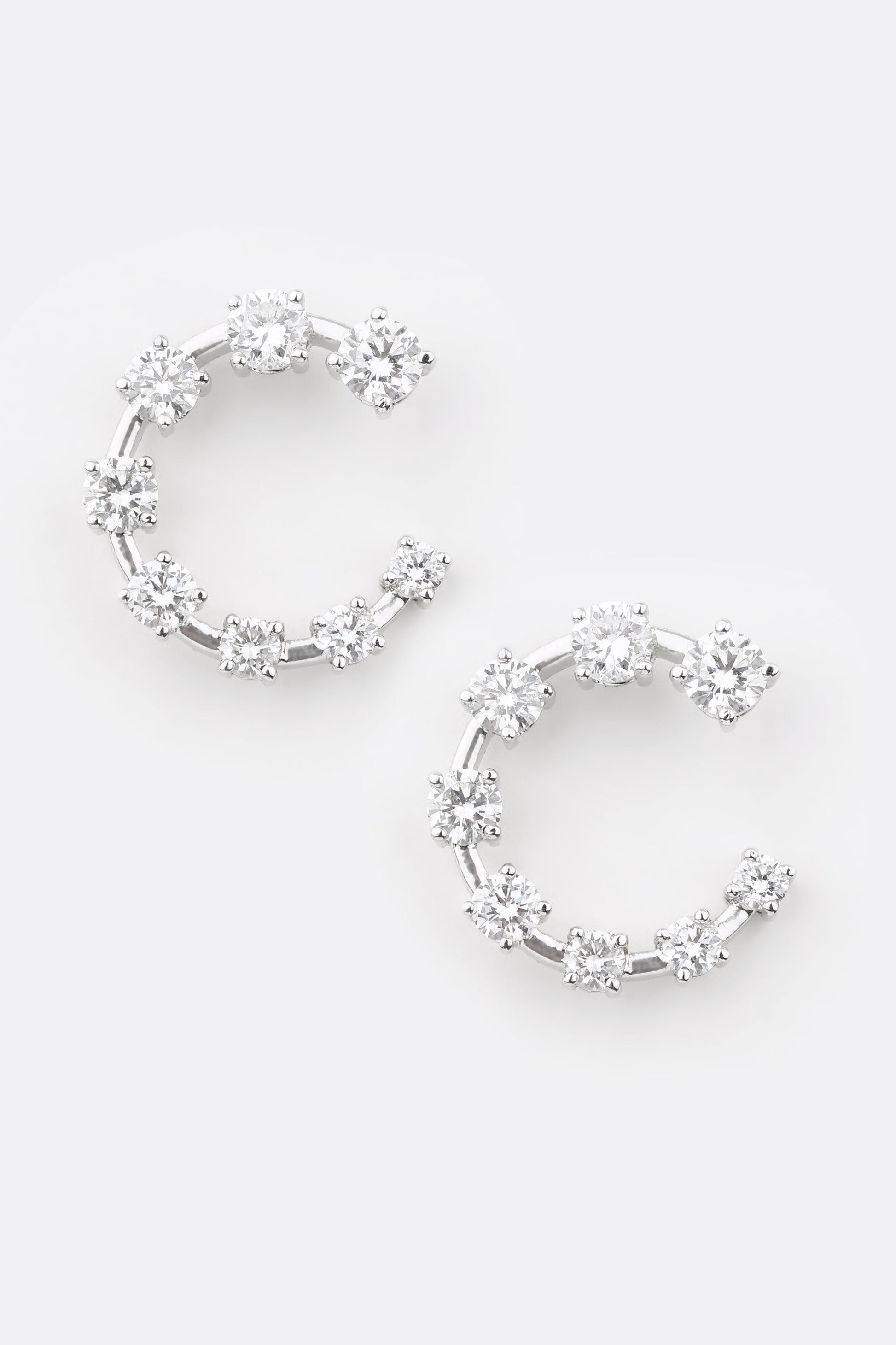 The Evora Celeste earrings capture the elegance of the night sky in motion. With a crescent-inspired design lined with radiant stones, they reflect light from every angle — creating a soft, ethereal glow. Minimal yet mesmerizing, these earrings embody refined sophistication for those who believe true beauty lies in subtle brilliance.