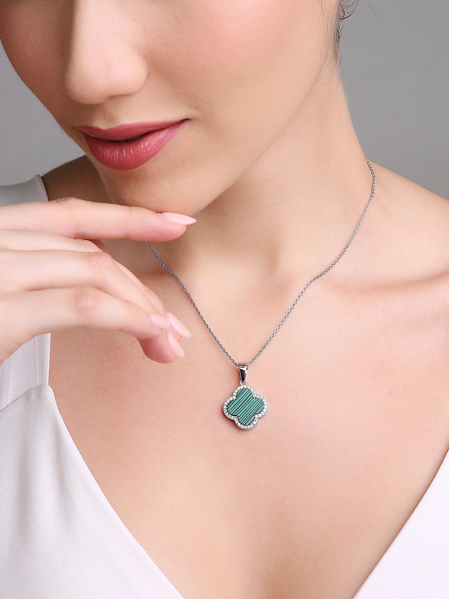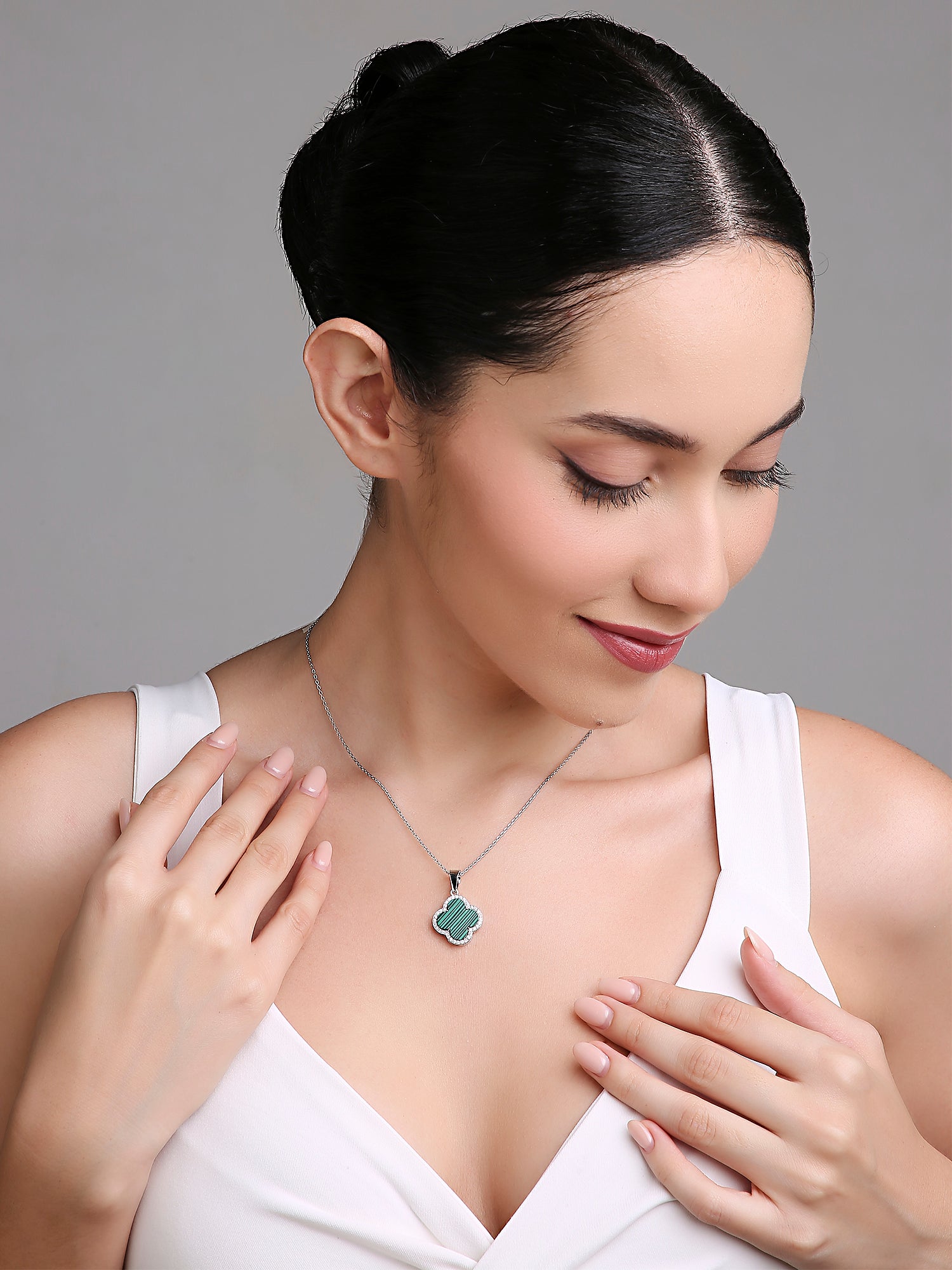 A symbol of luck, love, and elegance — the Nova Clover necklace brings timeless charm to modern sophistication. Featuring a radiant green clover pendant framed in silver, it embodies harmony and grace. Perfect for those who believe in creating their own luck — with a touch of effortless style.