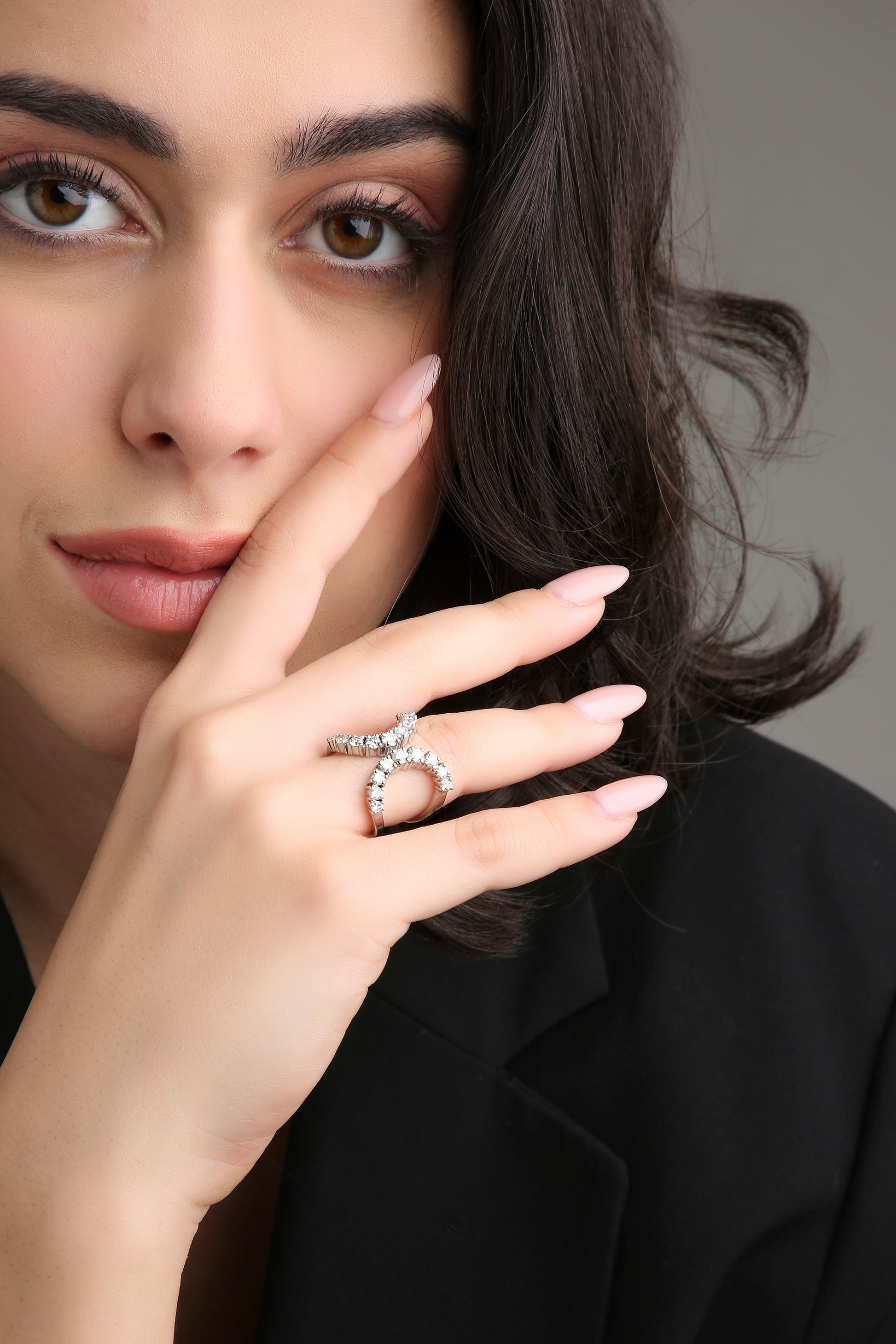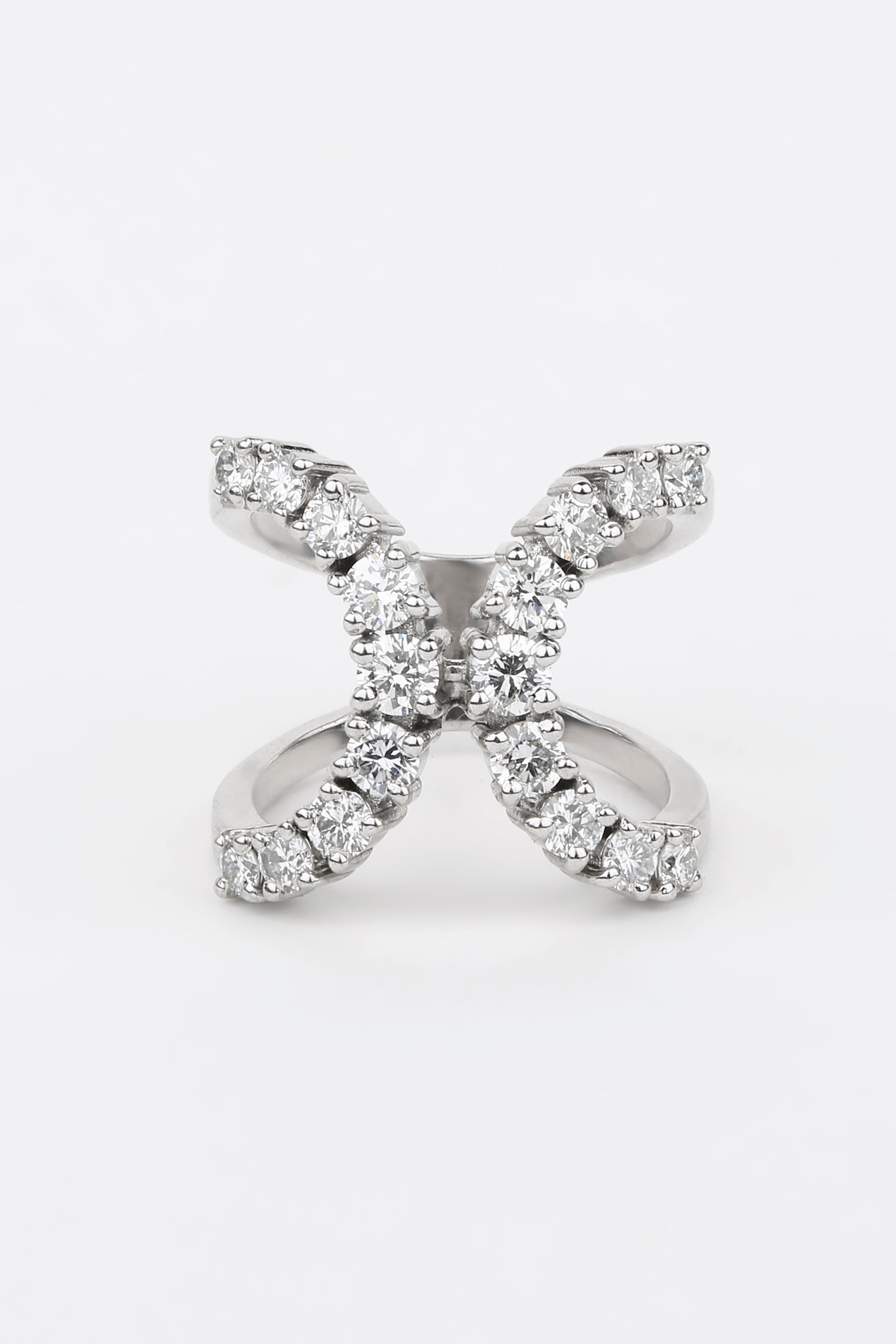 The Radiant Twist ring is where elegance meets motion. Crafted in sleek white gold, its intertwined diamond bands create a fluid, sculptural form that dances with light from every angle. Bold yet refined, it symbolizes the beautiful balance between strength and grace — a true modern classic.